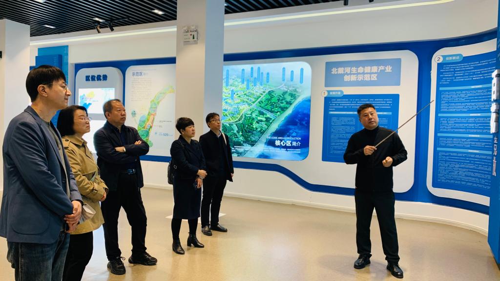 在北戴河国家生命健康产业创新示范区展厅,北戴河新区人力资源和社会保障局朱敬伟副局长为调研组详细介绍了示范区的设立意义、发展思路、发展定位、发展目标、产业体系等,重点介绍了“一核五区”的空间格局。调研组实地走访了潘纳茜医院,了解医院的运营、医疗技术及特色化服务等。在阿那亚社区,调研组听取了有关小镇规划建设、运营管理、商业配套、文化资源挖掘利用等介绍,与企业相关人员进行了交流。