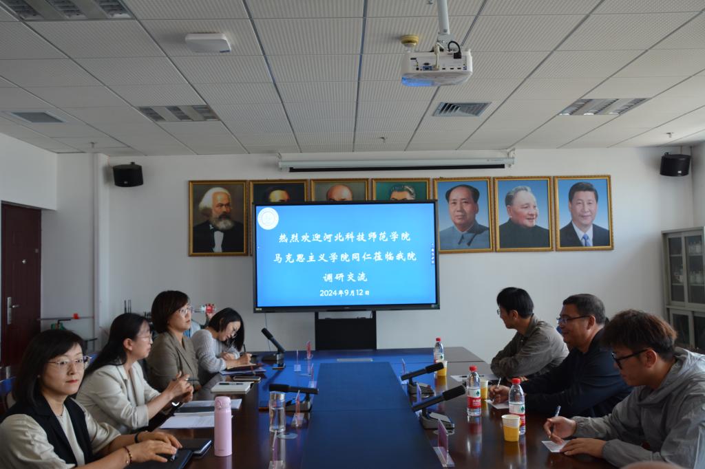 孙丽院长介绍了该院师资队伍及思政课教育教学等情况。王炳义副院长介绍了本院基本情况、思政课改革及实践教学等方面的经验做法。与会人员围绕高校思政课实践教学体系的构建及实践情况;虚拟仿真实践教学基地建设;铸牢中华民族共同体意识教育及实践教育基地建设;推进大中小学思政课一体化建设工作等方面内容进行交流研讨。