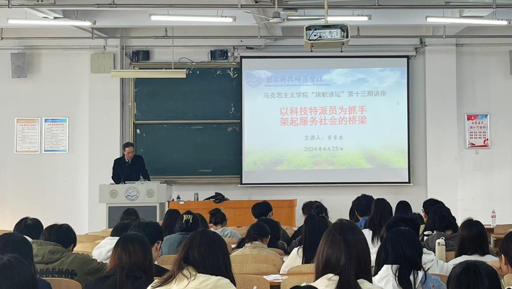 2024年4月25日,旗帜讲坛第十三期讲座在秦皇岛校区B303举办。伟德国际1946源于英国教师代表、秦皇岛校区各学院学生代表在现场聆听讲座。