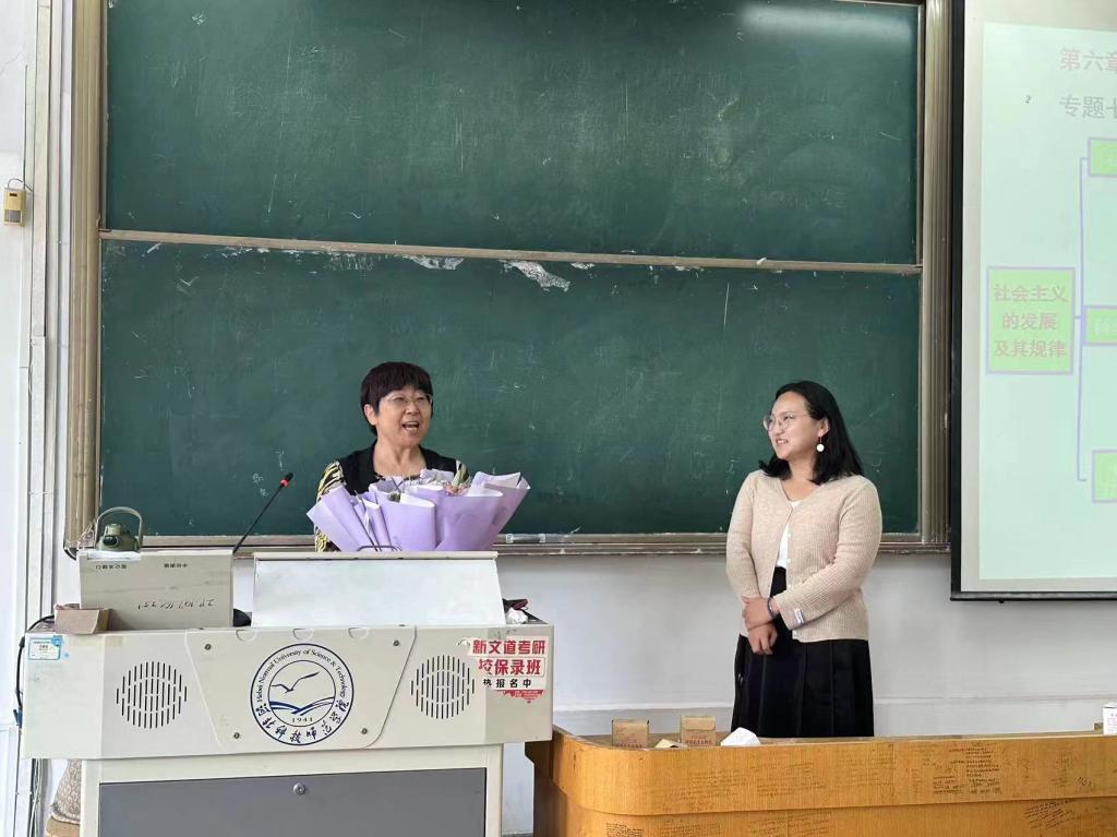 在荣休仪式上,原理教学部副主任贾雪梅介绍了赵艳芹老师从教三十多年来数十年如一日的辛勤付出与卓越贡献,向赵老师赠送了鲜花。学生代表表达了对赵老师的感谢和不舍,往届学生也以书面留言的形式表达了师恩往事。赵艳芹老师也深情表达了对教育事业的无限热爱和期待,对学院和同事的感激与不舍,并表示今后仍然会继续关心、关注、支持学院工作,为学院未来发展贡献余热,赢得了在场人员的阵阵掌声。