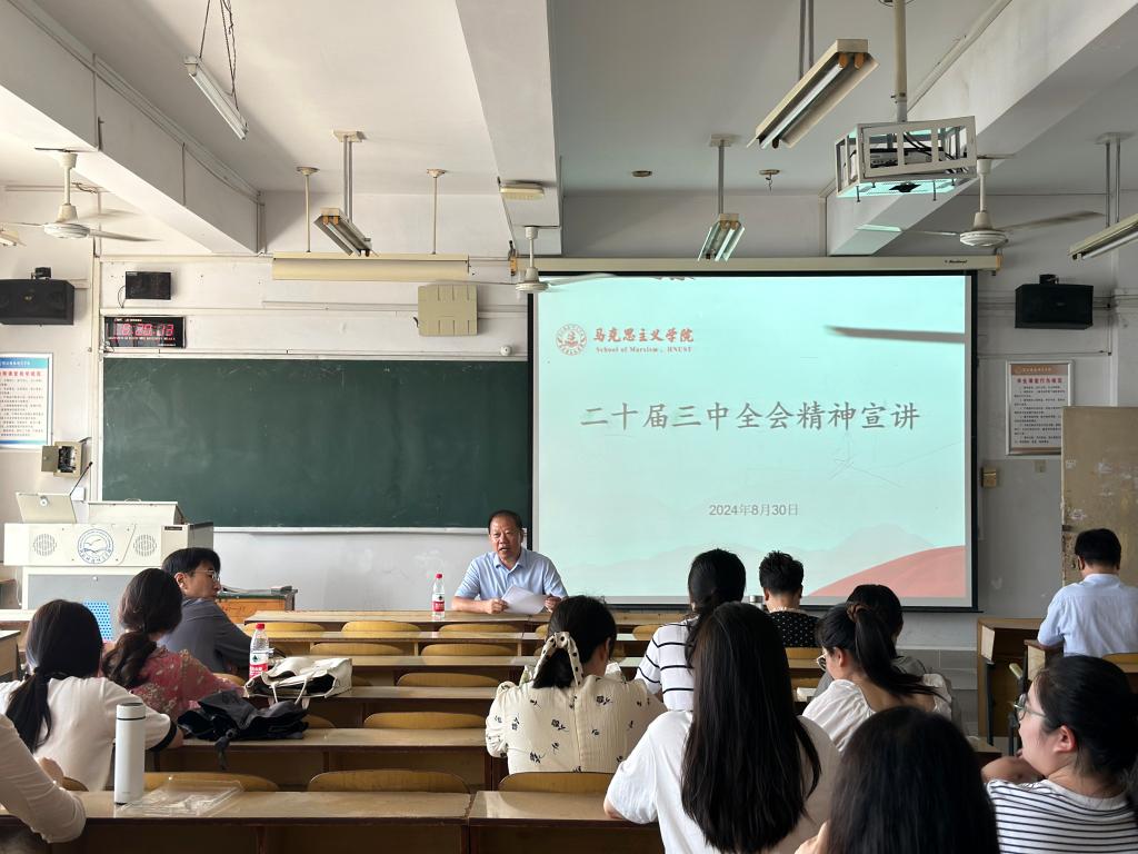 2024年8月29日上午8:20,伟德国际1946源于英国党委在X402举办了题为《新征程进一步全面深化改革的纲领性文件——深刻领会和把握党的二十届三中全会精神》主题党课。学院党委书记郭立昌同志作为主讲人,从深刻领会和把握进一步全面深化改革的重大意义,深刻领会和把握进一步全面深化改革的指导思想,深刻领会和把握进一步全面深化改革的总目标,深刻领会和把握进一步全面深化改革的重大原则,深刻领会和把握进一步全面深化改革的重大举措,深刻领会和把握进一步全面深化改革的根本保证等方面号召伟德国际1946源于英国广大党员教师要认识到党的二十届三中全会是在以中国式现代化全面推进强国建设、民族复兴伟业关键时期召开的一次重要的会议。最后,郭立昌强调要认真学习二十届三中全会审议通过的《中共中央关于进一步全面深化改革、推进中国式现代化的决定》,要将学习贯彻党的二十届三中全会精神作为当前和今后一个时期内的一项重大政治任务来对待,要通过理论宣讲、旗帜讲坛、课堂教学、学生“一站式”社区等形式宣传二十届三中全会精神,引导青年学生深刻理解二十届三中全会精神,听党话,跟党走,积极投身以中国式现代化全面推进强国建设、民族复兴伟业当中去,用青春和汗水谱写绚丽的人生篇章。(编辑:郭亚芳   审核人:郭立昌)